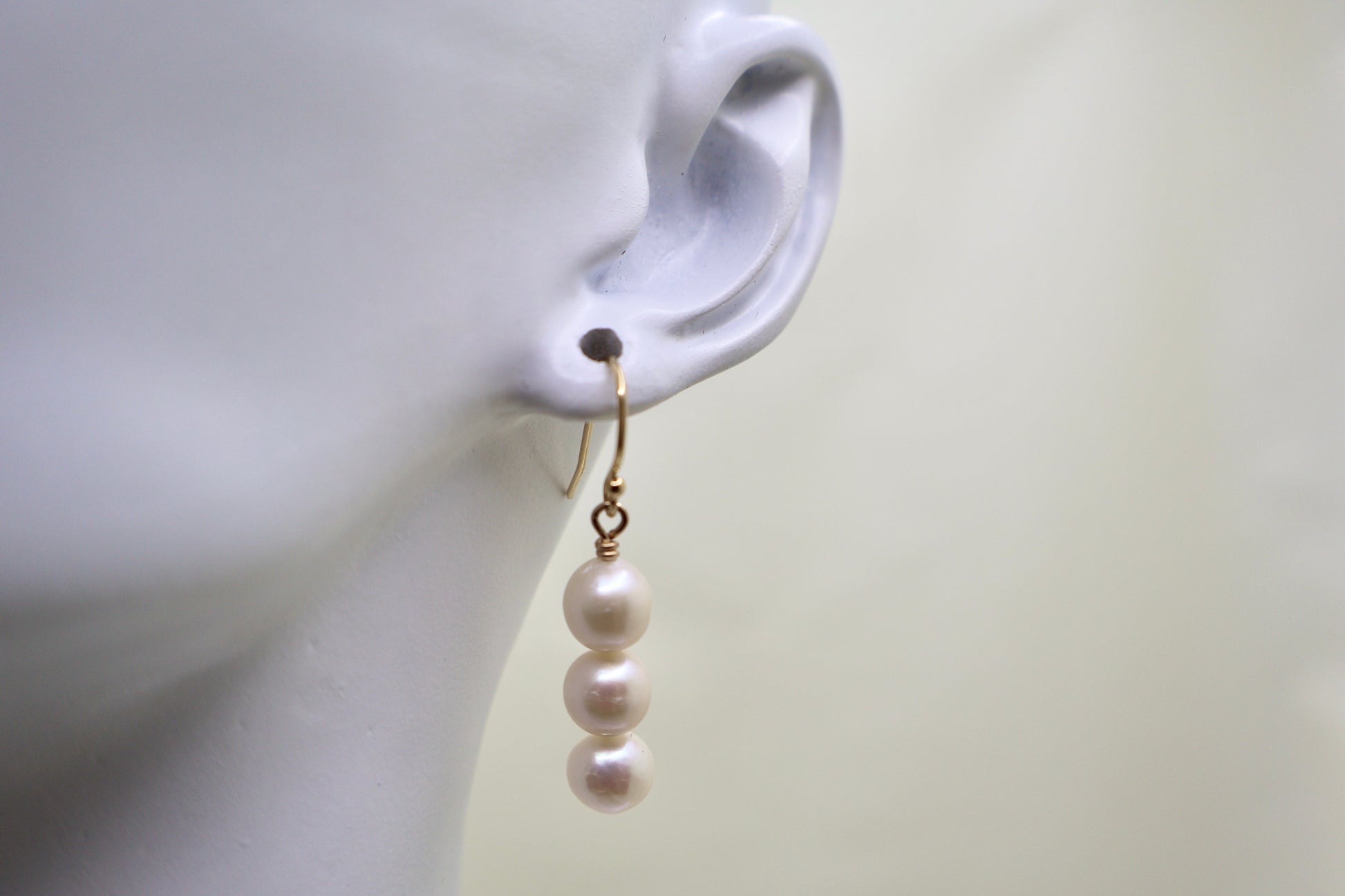 Simple, elegant, and timeless. Ophelia is all about quiet beauty. These dainty drop earrings feature three lustrous pearls stacked in perfection. Wear it with your favorite outfit to elevate your style! Crafted with Grade A freshwater pearls and high-quality gold-filled materials for lasting shine and durability. Also available in sterling silver.